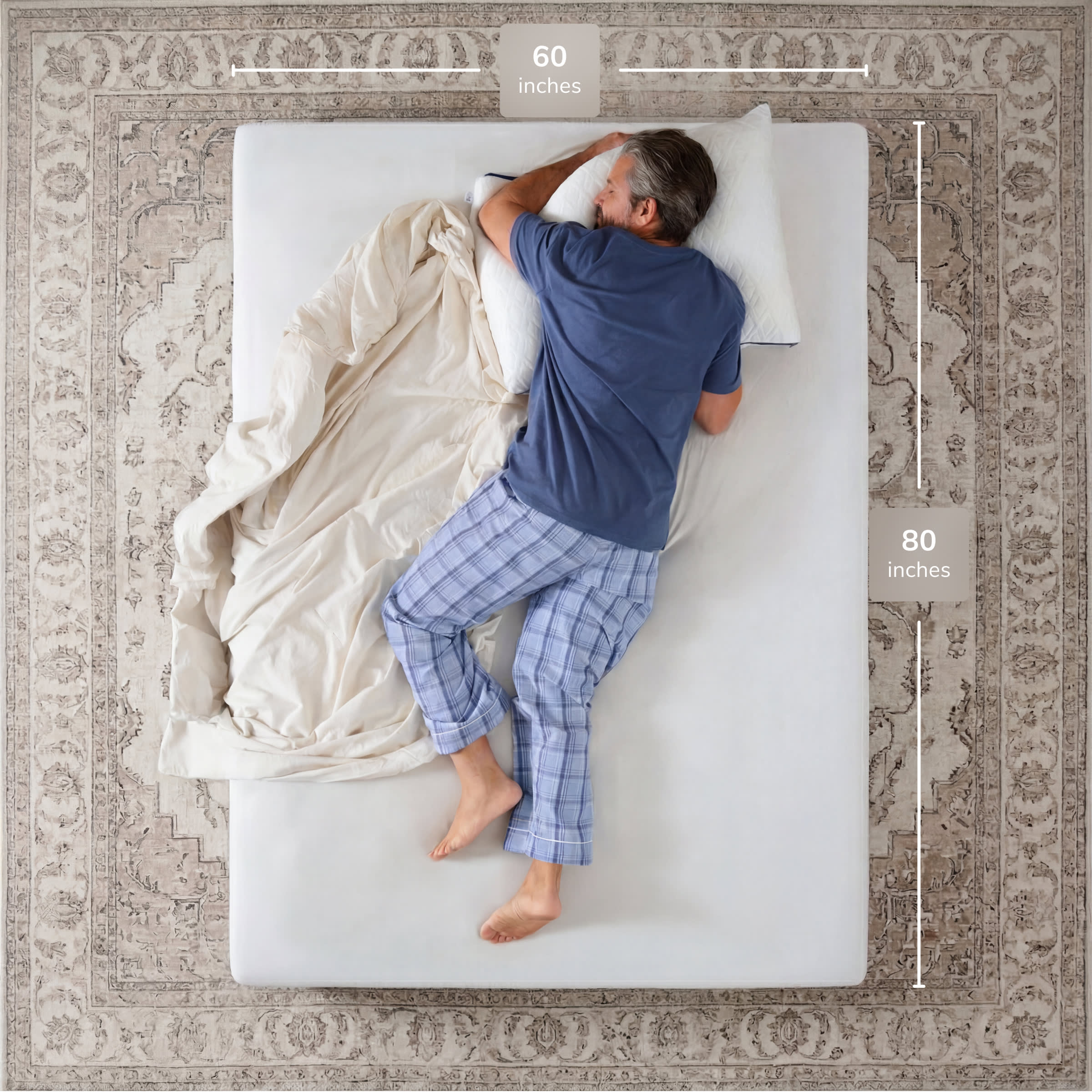 If you're looking to get measurements for every mattress size, check out our mattress sizes page. Here, you'll find all the standard measurements to help pick your new mattress. If you're looking to learn more about sleeping positions, personal preferences, and how they affect your mattress choice, take the Helix Sleep Quiz.